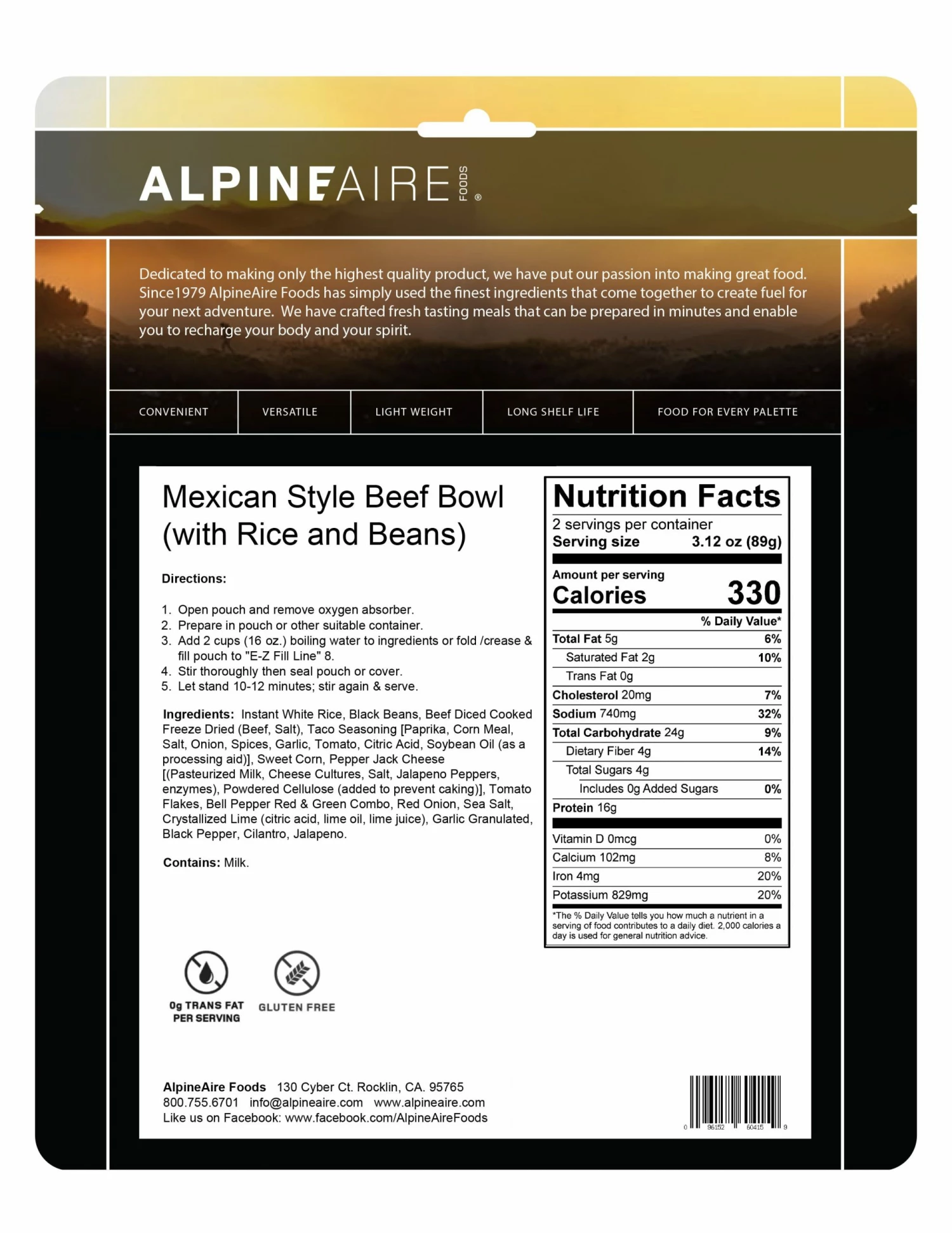 The AlpineAire Mexican Style Beef Bowl is a lifesaver for camping trips! The flavors are authentic, and the rice and beans are perfectly cooked. Highly recommend for outdoor enthusiasts.