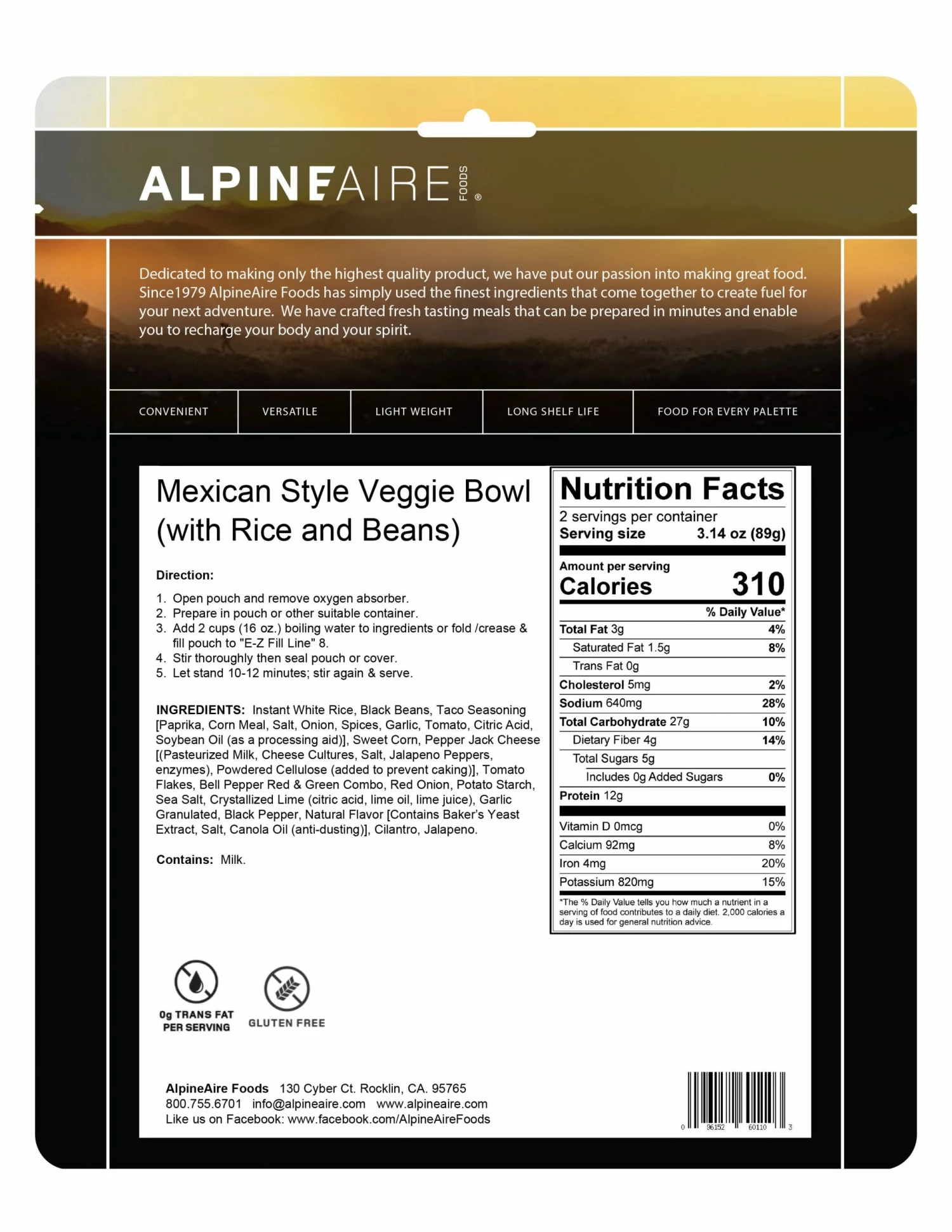 The AlpineAire Mexican Style Veggie Bowl is a must-have for outdoor enthusiasts. It’s flavorful, filling, and perfect for on-the-go meals.