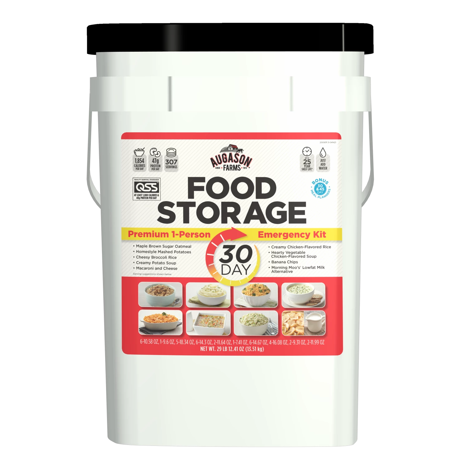 This premium 6-Month survival food kit is the ultimate emergency preparedness food solution. It comes with six waterproof pails, each providing plenty of great-tasting, nutritious and easy-to-prepare food for one person every month for up to six months. With 307 servings and 54,670 calories per pail, you’ll average over 1,800 calories per day. That’s an impressive number of calories per day considering most emergency food kits on the market provide calories well below 1,000 per day.