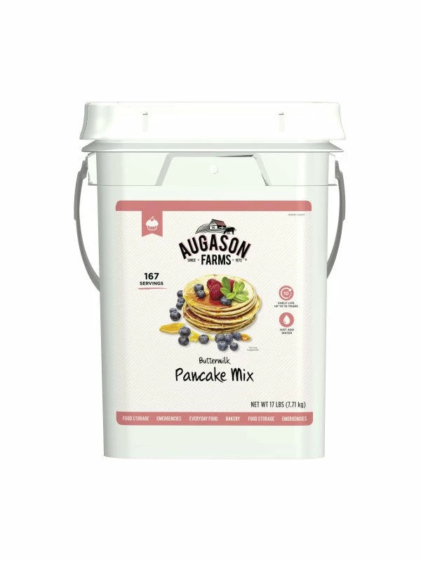 Augason Farms Food Storage Buttermilk Pancake Mix is made from high quality flours that are blended to perfection. All you need to do is add water to prepare them. Full of wholesome goodness and irresistible flavour, a plate of steaming hot buttermilk pancakes with your favourite fruit or syrup generously poured over the top makes a perfect breakfast. Not only can you make tender, light, fluffy, golden-brown pancakes—nearly everyone’s favourite—consider also using the Buttermilk Pancake Mix to easily and quickly make waffles, biscuits, muffins, sweet banana bread and scones. In fact, Buttermilk Pancake Mix is commonly referred to as the Swiss Army Knife of food storage.