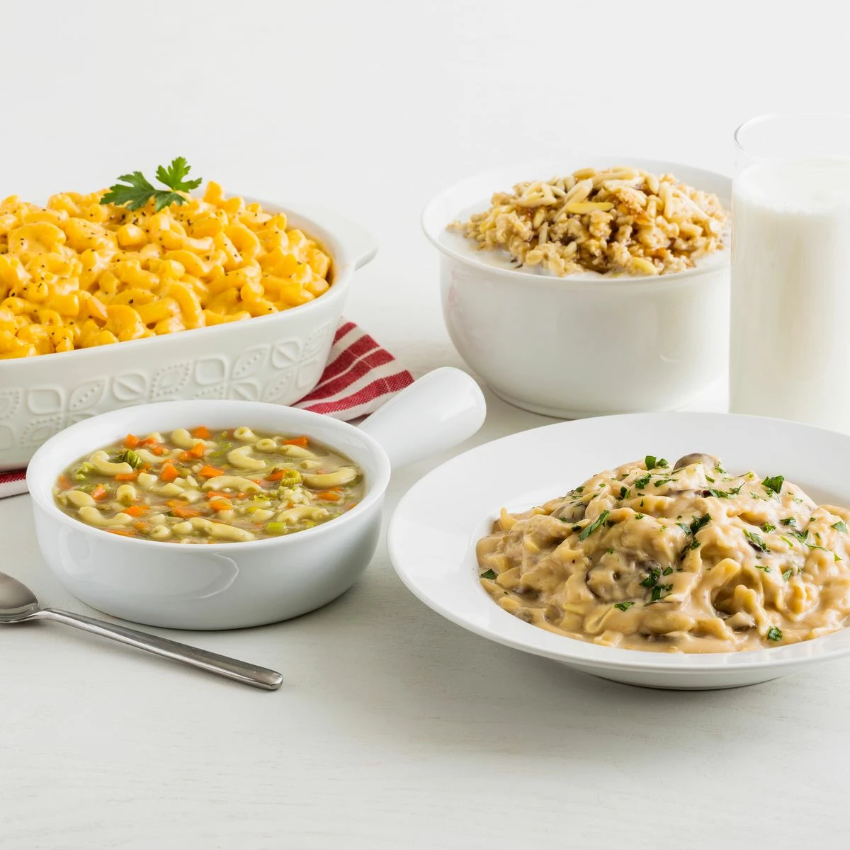 Perfect during times of unexpected catastrophes, outdoor adventures, or busy week days, our Breakfast and Dinner Variety Pail is an emergency food supply that provides you with plenty of healthy, ready-in-minutes meal options. We’ve included 13 breakfast and dinner varieties delicious dry soup mixes, popular entrée favourites, Strawberry Creamy Wheat, mouthwatering chocolate pudding, and Morning Moo’s Low Fat Milk Alternative (a refreshing powdered milk drink).