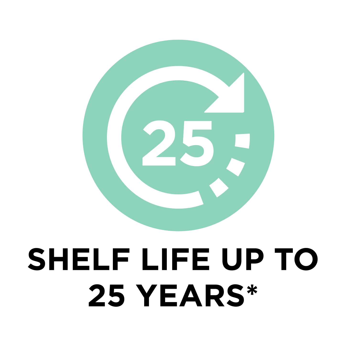 Shelf life ranges from 10 to 20 years based on food type. Unopened products included within a kit retain their shelf life after kit container is opened. Best when stored in a cool and dry place at temperatures between 55°F and 70°F. Actual shelf life may vary based on individual storage conditions.