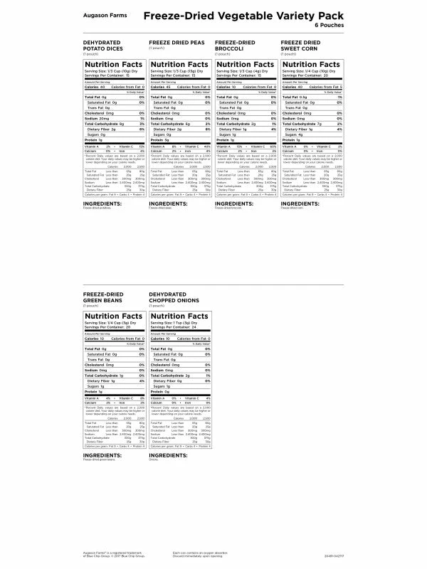A great investment for emergency preparedness. The fruits and veggies are delicious and retain their nutritional value. Packaging is sturdy and reliable.