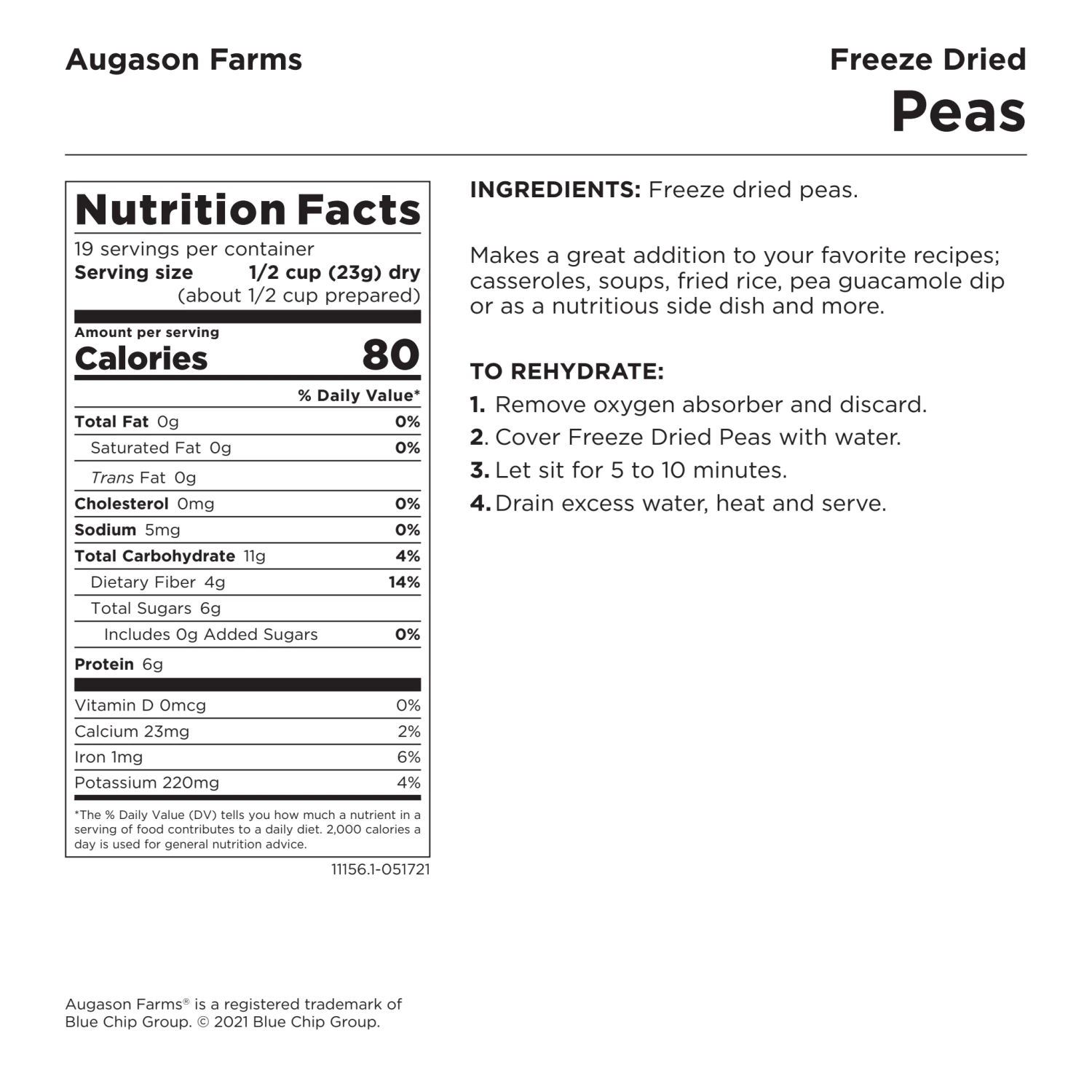 Did you know that freeze dried vegetables like Augason Farms Freeze Dried Peas contain essential nutrients, like vitamin C, that help ensure survival during a catastrophic disaster? Just rehydrate and add to casseroles, soups, or enjoy as a side dish. And, they’re certified gluten free.