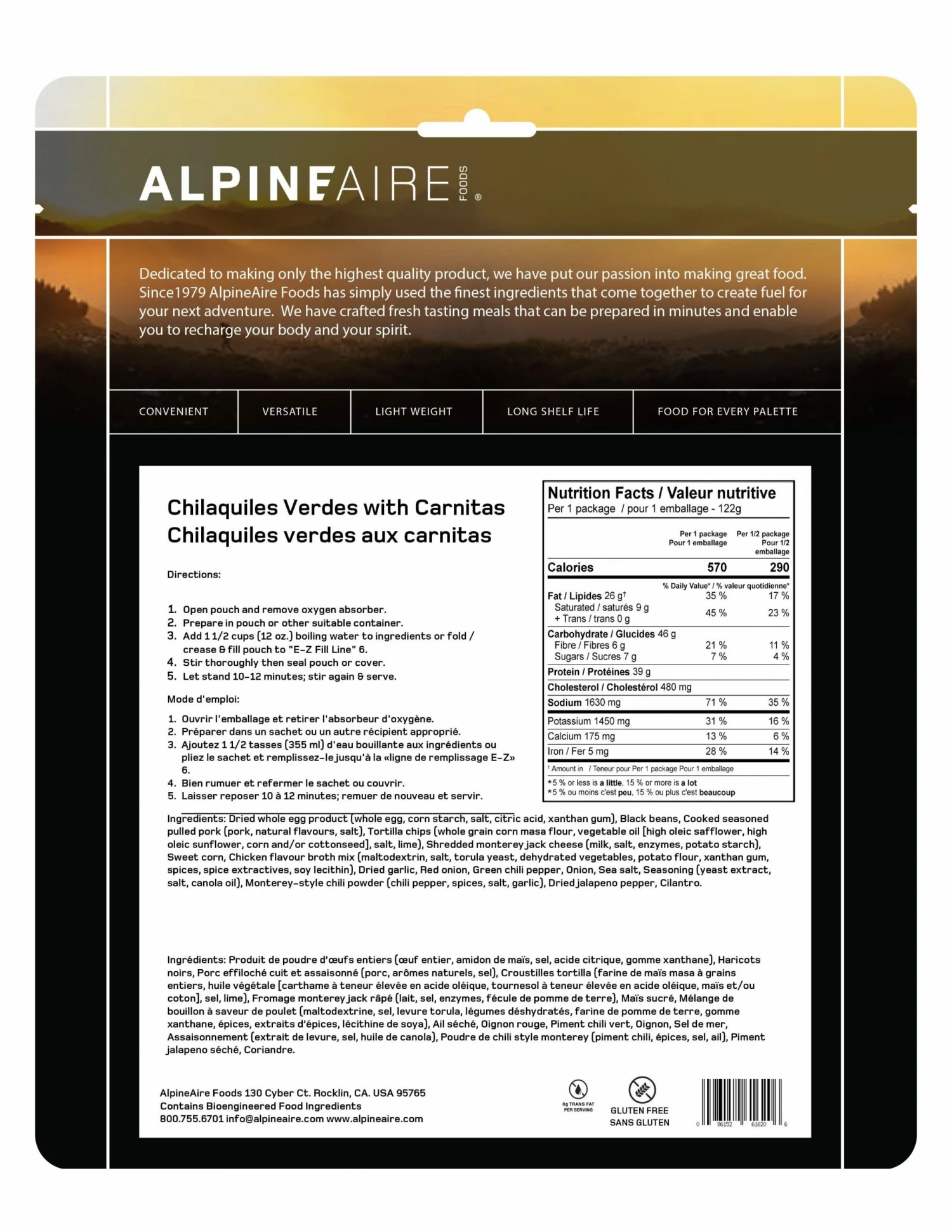 The AlpineAire Chilaquiles Verdes With Carnitas is a must-have for any backpacking trip. It’s easy to prepare and tastes amazing. I’ll definitely be buying more.