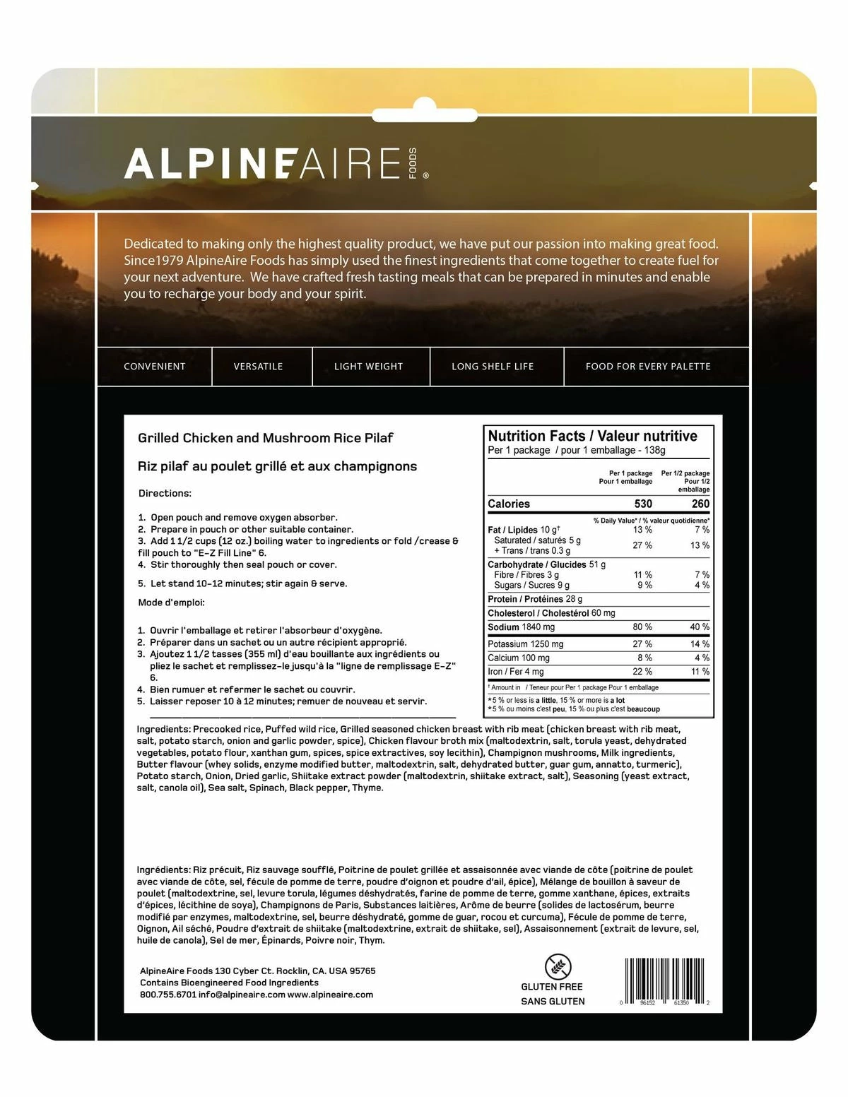 White meat chicken and mushrooms in a creamy, savoury sauce with cooked wild rice and herbs.