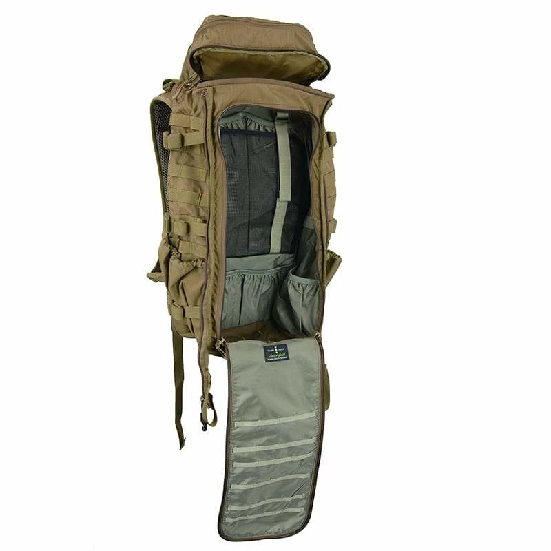 The G1 Little Brother pack is sold as part of our J79 Skycrane II system, and is a very popular stand-alone “3-day” pack. As part of the EMOD system, it works well with our J51 Warhammer, F1 Mainframe, or M1 Carrier packs.  It features an expansion tunnel that allows you to insert any of our side scabbards (sold separately). With our A4SS Tactical Weapon Carrier installed, the pack functions much like our G3M Phantom. The pack features both top-loading and full-front panel loading. MOLLE/PALS webbing fills all useful spaces inside and out. There are two hydration sleeves on interior back wall sized for our WXP3L 3-liter bladders. A radio rack on back wall holds PRC-117 class military radios.