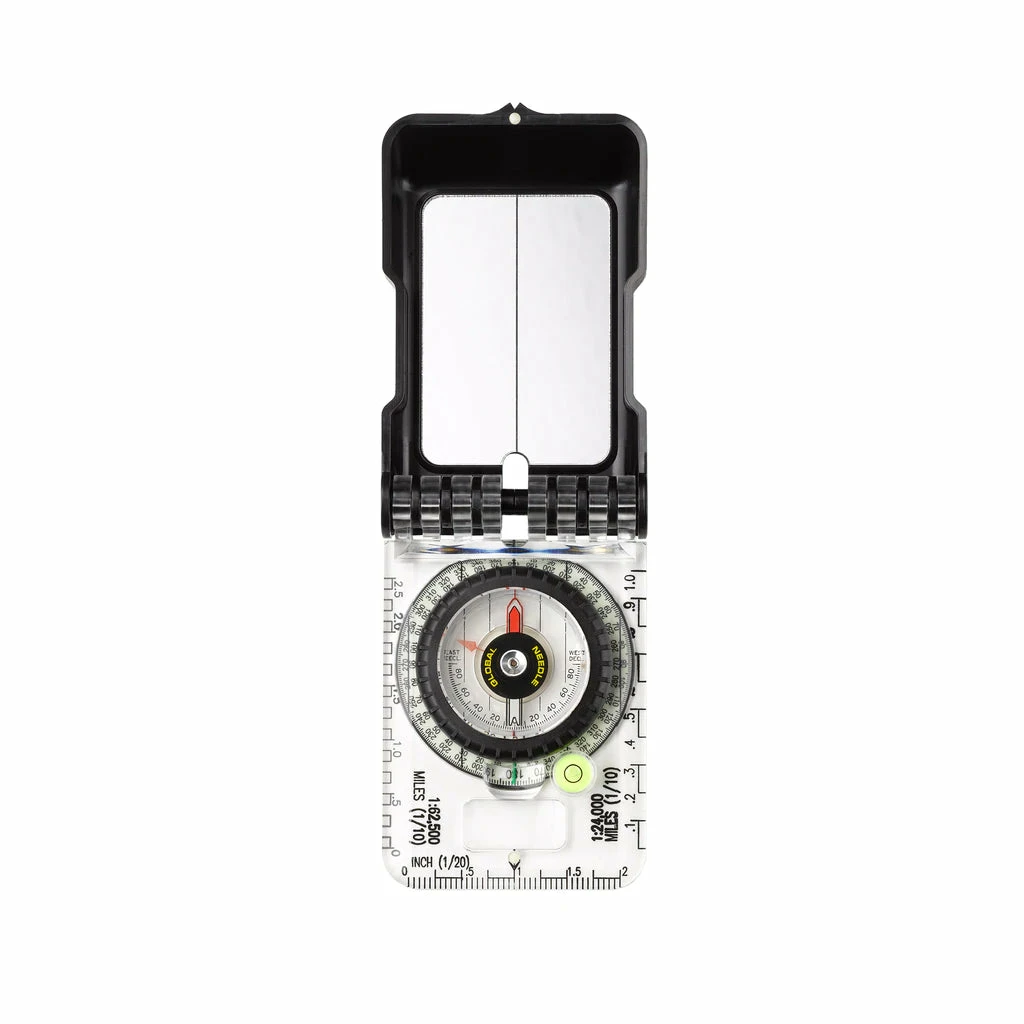 This mirrored baseplate compass offers professional features like an internal vial inclinometer and lid inclinometer that is ideal for advanced navigation, snow-safety, search & rescue, or scientific field work.