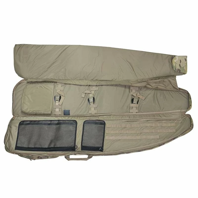 The E57B is nearly identical to our E2B Sniper Sled Drag Bag. The main part of the rifle bag is simply extended, a little at each end, to make the overall interior length 57″. Examples of weapons that can be carried in this bag are the Barrett L82A1M, fully assembled.