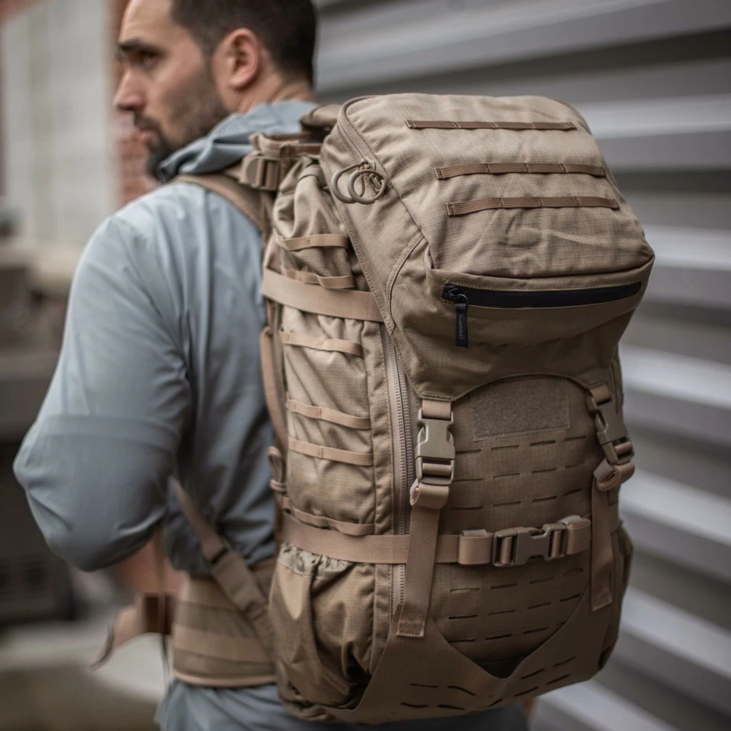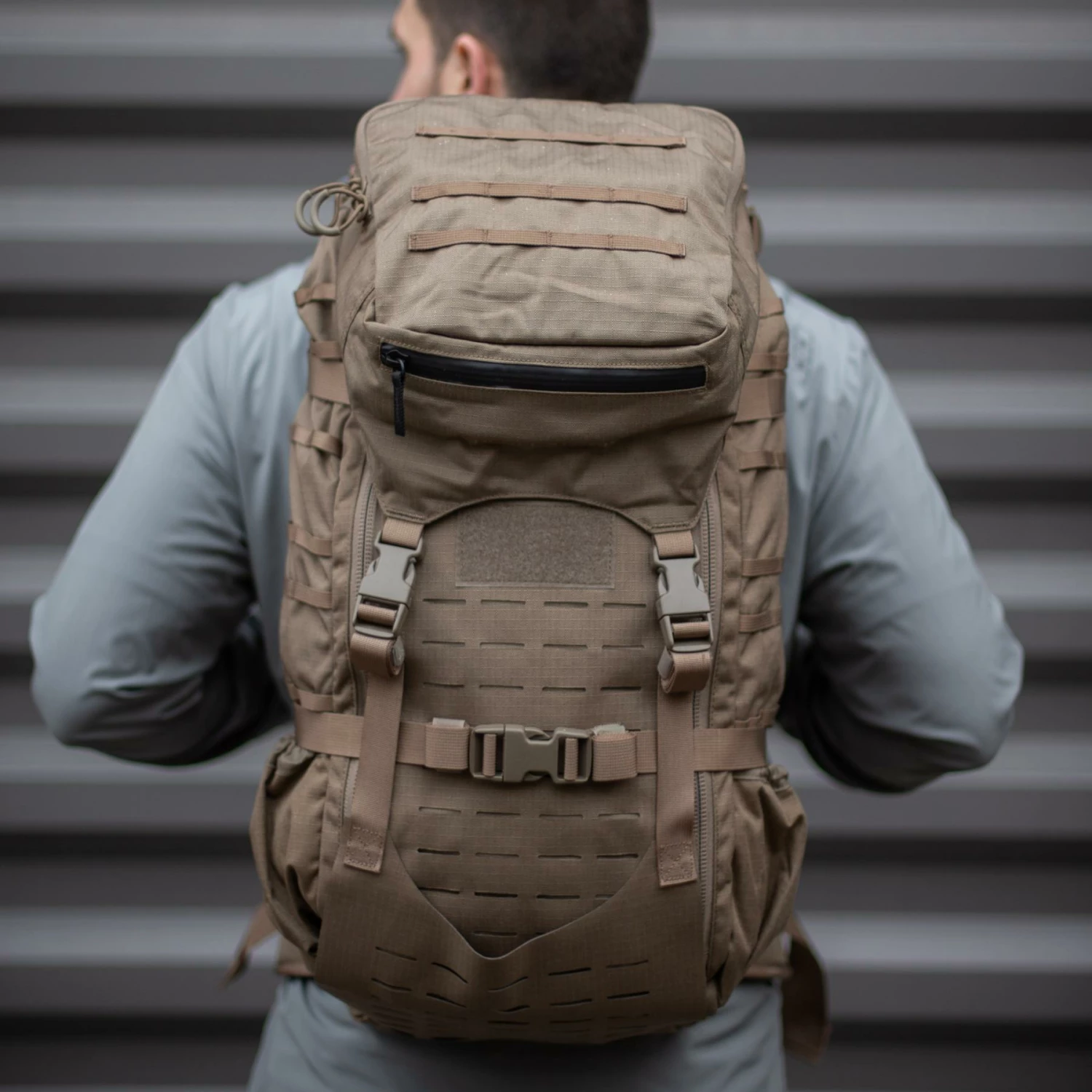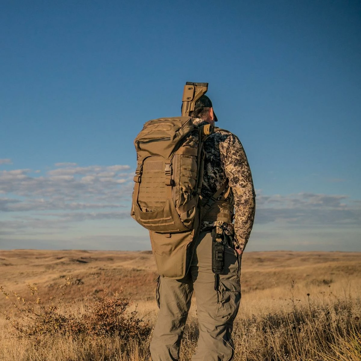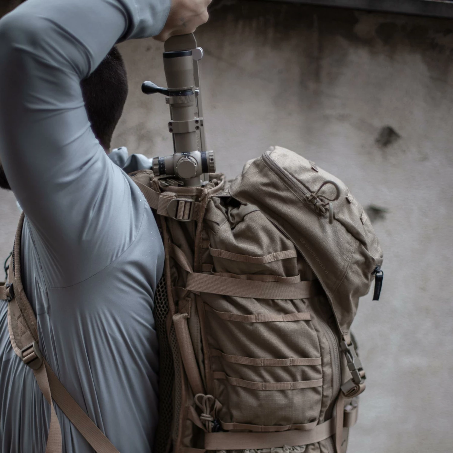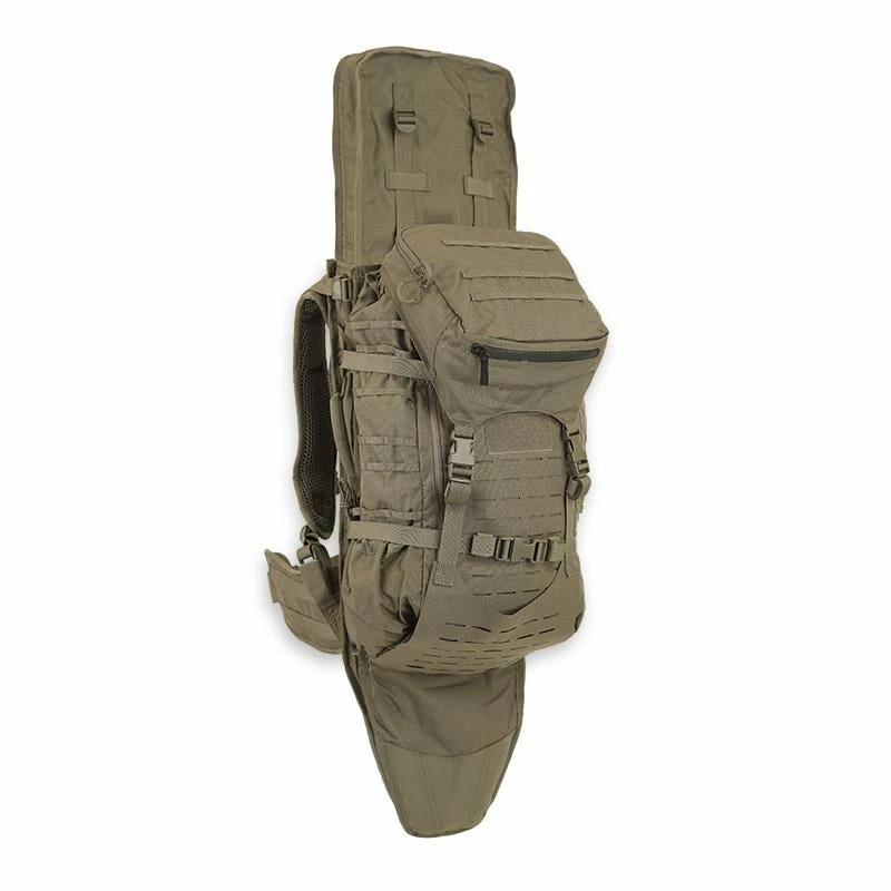 The G2 is a mid-sized pack with a full-width scabbard to better accommodate weapons with larger cross-sections or bulky optics. The wide scabbard also allows it to serve as an excellent laptop or military radio compartment, and because its also wide at the bottom, users have the option of carrying weapons butt-down or butt-up.