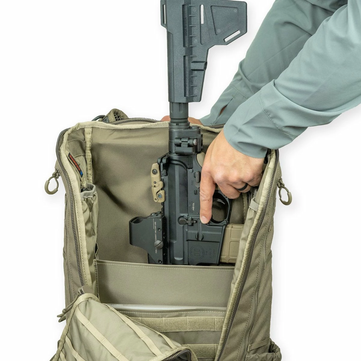 intentionally designed for one specific purpose — to allow comfortable and discreet carry of longer guns, such as a full-scale folding sniper rifle. Equipped with two interior sleeves, the Big Trick lets you carry laptops and documents to the office with ease, and the full-featured organizer in the top pocket provides an intuitive, easy-access layout for optimal organization. Low-profile magnetic closures on both sides of the pack offer quick access to your handgun while the expandable bottom compartment increases overall volume and lengthens the scabbard, allowing you to customize the pack for load size and weapon length.