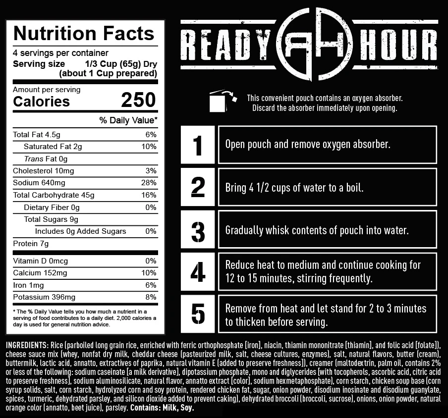 Ready Hour case packs allow you to buy in large quantities, without wasting what you don’t use right away! These cases come with multiple pouches of food. This helps you maintain the shelf-life of your food until you’re ready to cook it.