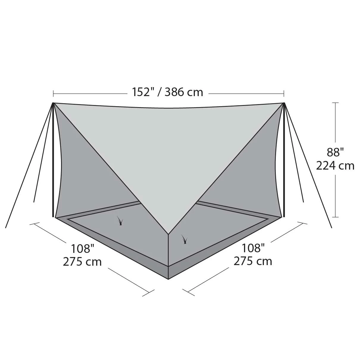 - 3 reinforced tarp tie-offs and 3 reinforced anchors on each edge allow for extra stability anywhere