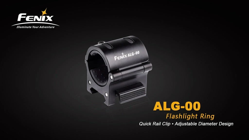 Quickly attach/detach your flashlight to your gun’s rail with the Fenix ALG-00 rail mount’s quick release rail clips. The adjustable diameter allows you to use any flashlight that is 0.9”-1.02” (22.5-26mm) in diameter. The ALG-00 is made of precision machined aluminum with an anodized black matte finish. It includes an anti-skid rubber cushion to maintain a firm hold of your flashlight.