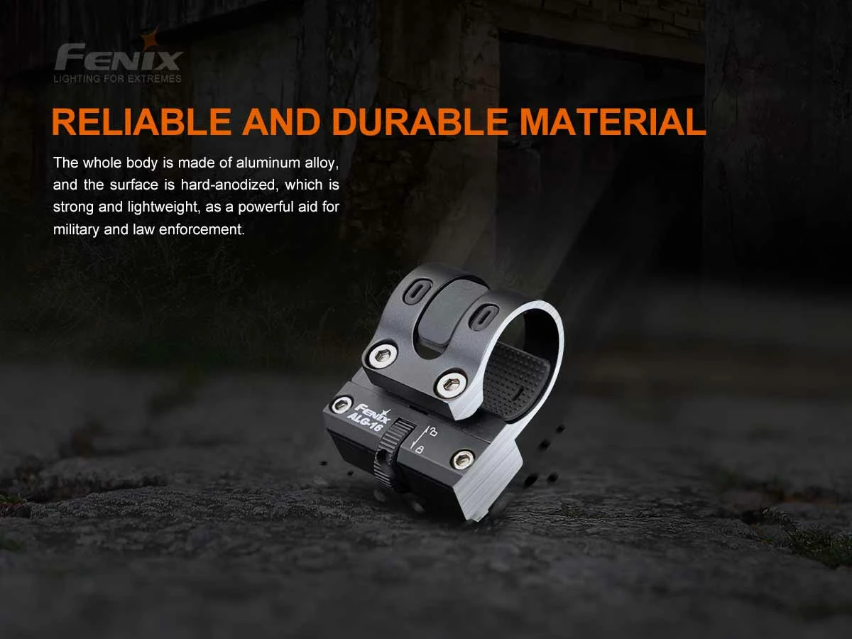 The Fenix ALG-16 M-Lok Rail Mount, is a great solution for mounting a flashlight to a rifle with a M-Lok guide rail. The quick release roller allows you to mount a flashlight for a secure fit. Made of hard-anodized aluminum, the Fenix ALG-16 M-LOK Rail Mount is strong and lightweight making it perfect for harsh conditions where durability counts.