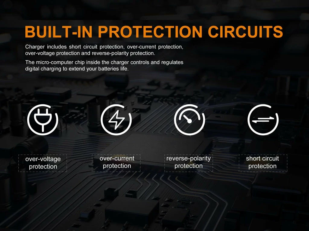The Fenix ARE-D1 is a single channel smart charger that features Micro USB charging and USB discharging functionality. It is compatible with Li-ion and Ni-MH/Ni-Cd batteries. A high-definition LCD screen clearly displays the charging, discharging and battery status. The charger also includes multiple built-in protection circuits that guarantee charging and general usage are both simple-to-use and safe.