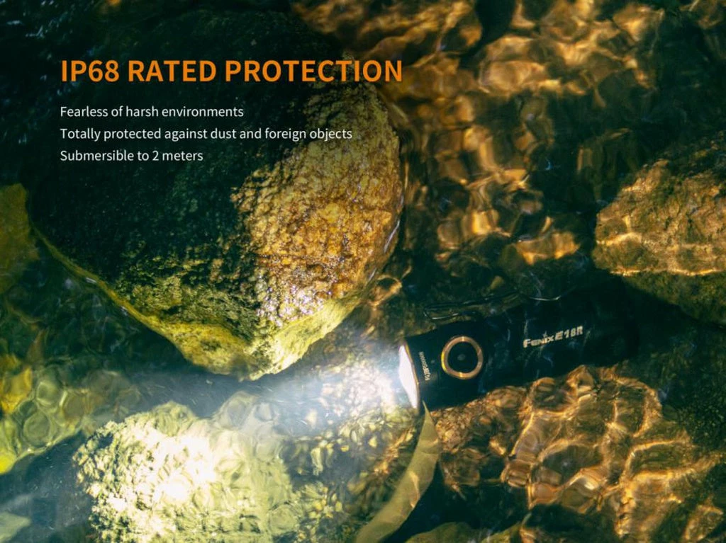 The Fenix E18R is an ultra-compact EDC flashlight with outstanding performance. Powered by one 16340 Li-ion battery, it emits a max of 750 lumens, but a CR123A lithium battery can be used as well. This exquisite flashlight is finely made of durable high-strength and oxidation-resistance aluminum, and the ultrathin optical lens is processed with the same coating as automobile lights. Featuring four output levels plus strobe, battery level indication plus magnetic tail, this 6 cm long light is a must-have for your daily life, outdoor activities and repair work.