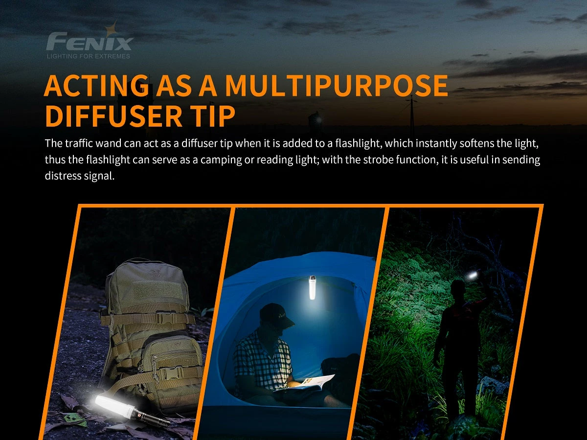 The Fenix AOT-02 is a new traffic wand that is compatible with various Fenix flashlights in the 40mm diameter range.