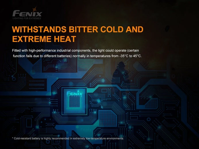 - Included: Rechargeable Fenix ARB-L21-2600Ex rechargeable Li-ion battery.