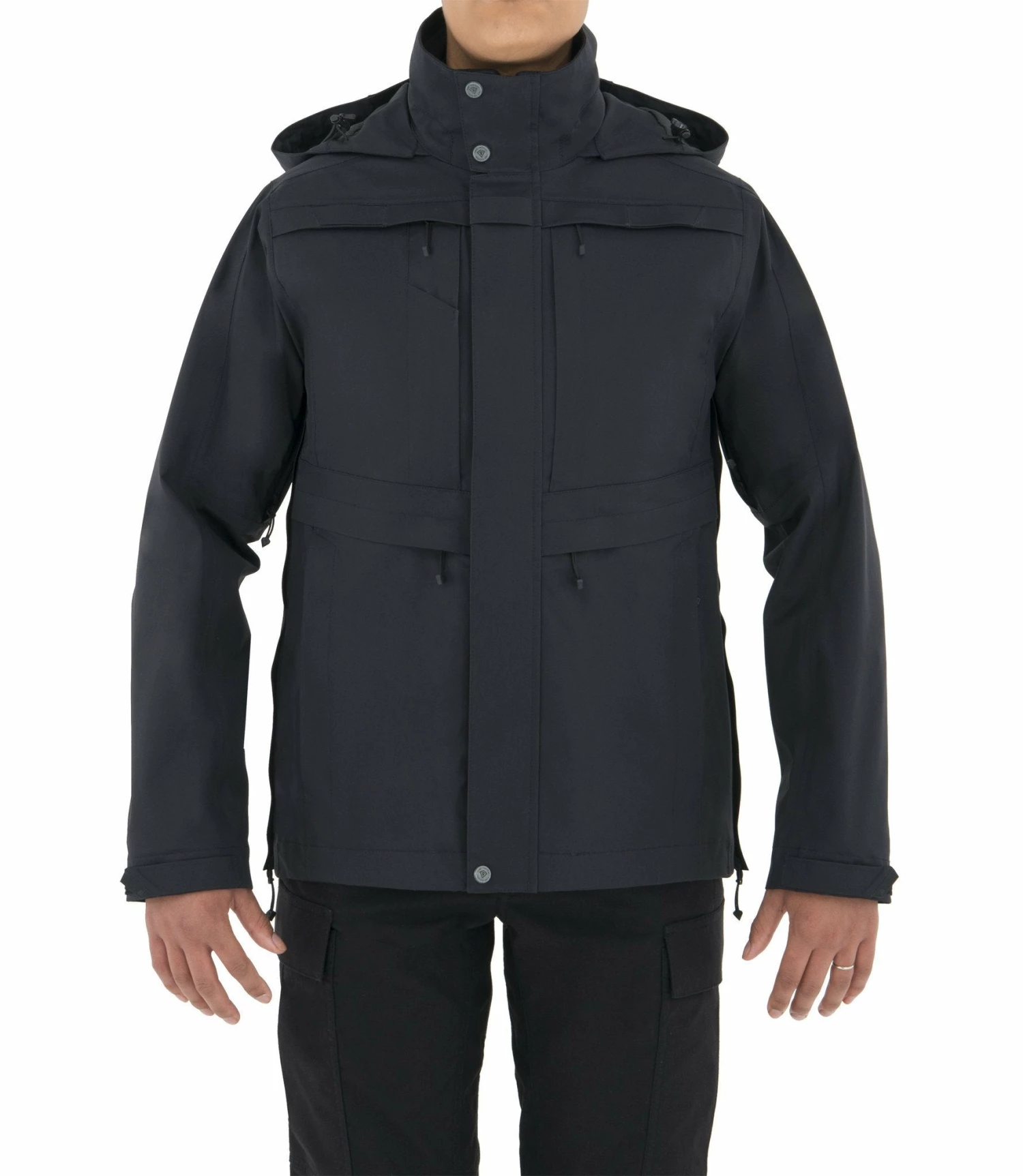 First Tactical Rain Gutter Design keeps water from dripping on your face, while 3-way adjustment and molding memory wire let you shape your hood ideally for you and trust it to keep your vision clear. Remove easily and stow in special lumbar pocket when not in use.