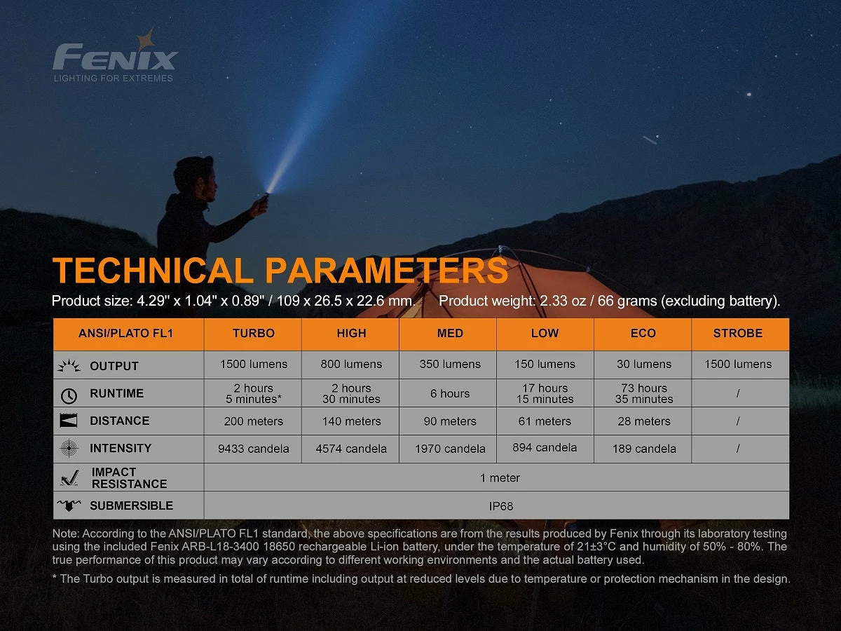 - Fenix 3400mAh Rechargeable 18650 Battery