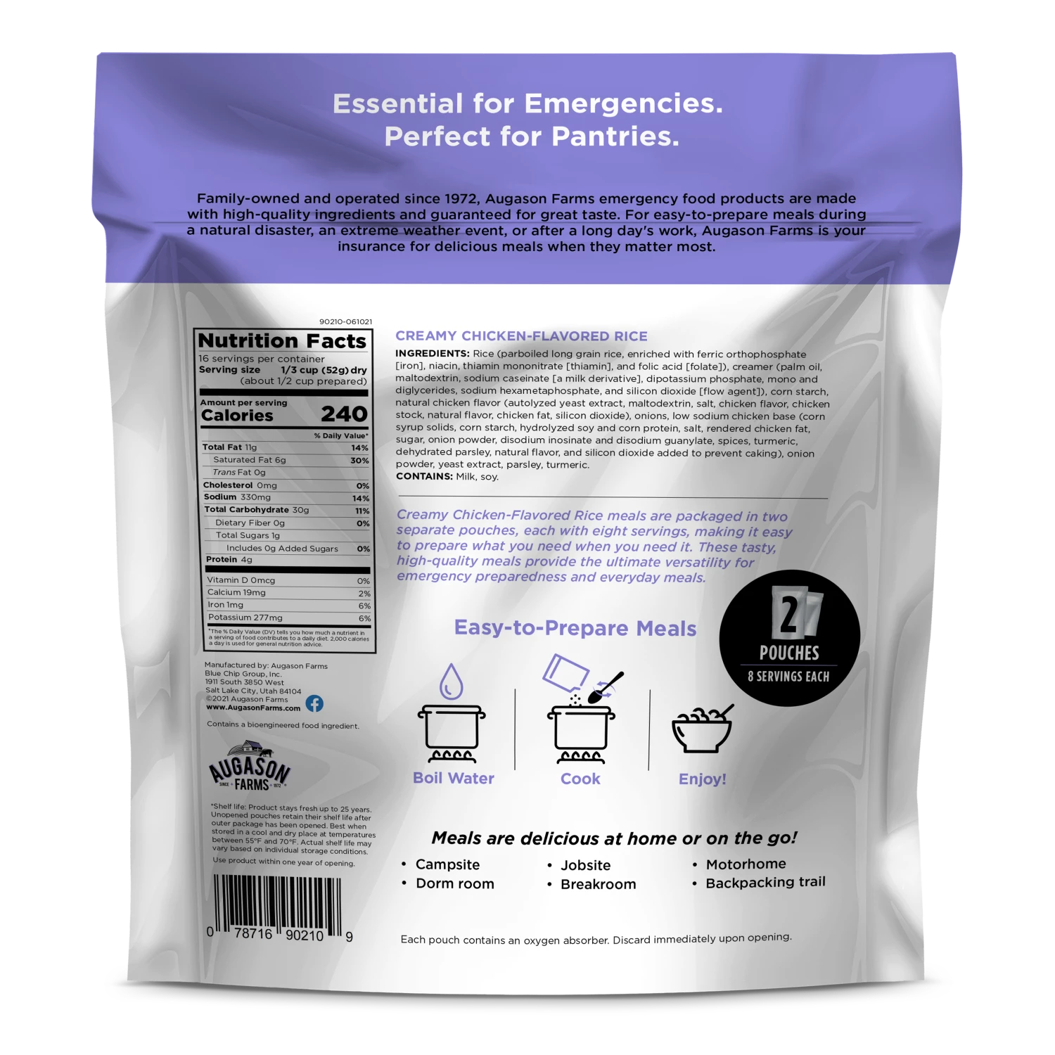 Rich in flavour and packed with nutrients, Augason Farms Creamy Chicken Flavoured Rice is a satisfying entrée you are sure to enjoy. Simply add the indicated amount of hot water and have a meal ready in minutes, or add the freeze dried Creamy Chicken Flavoured Rice to your emergency food storage supply.