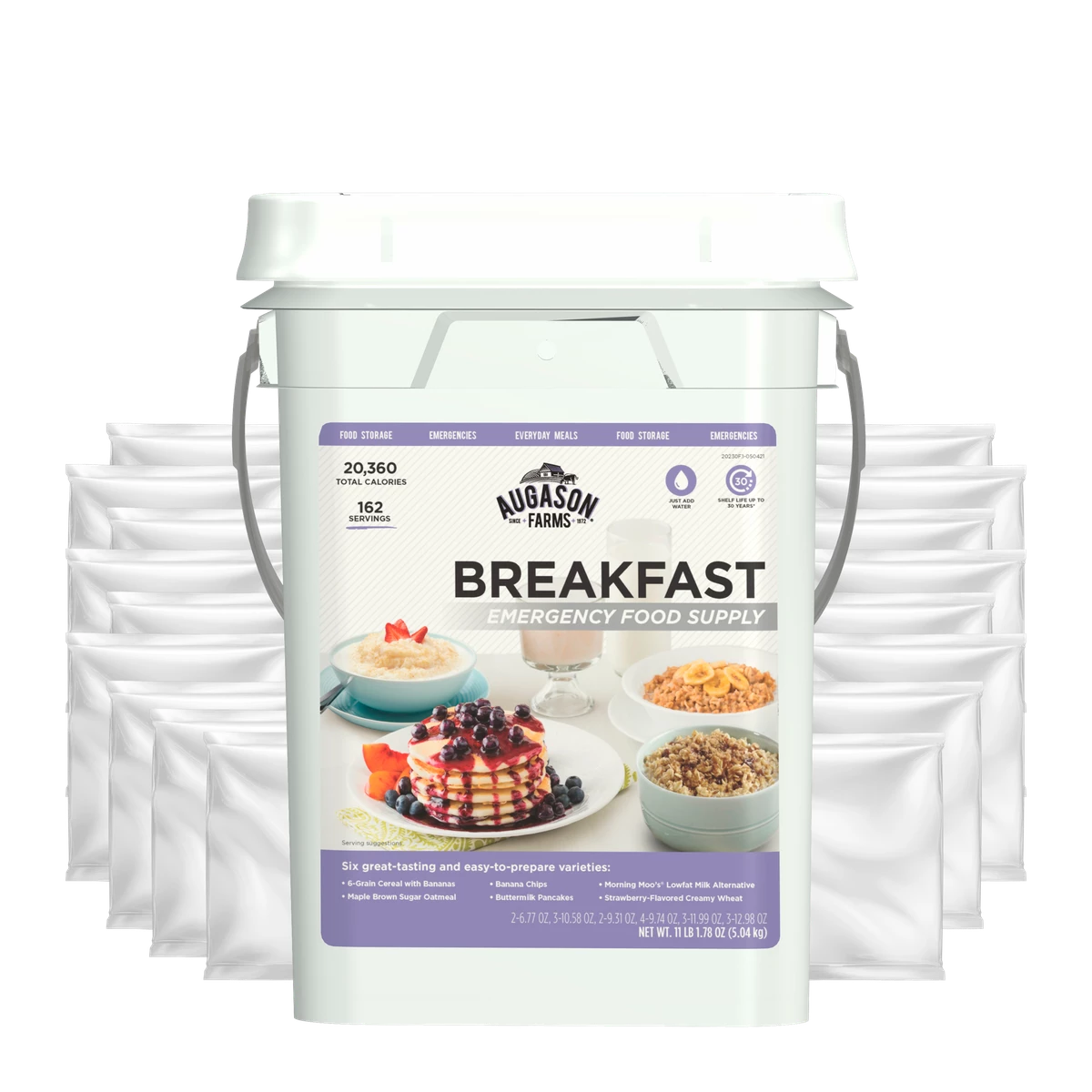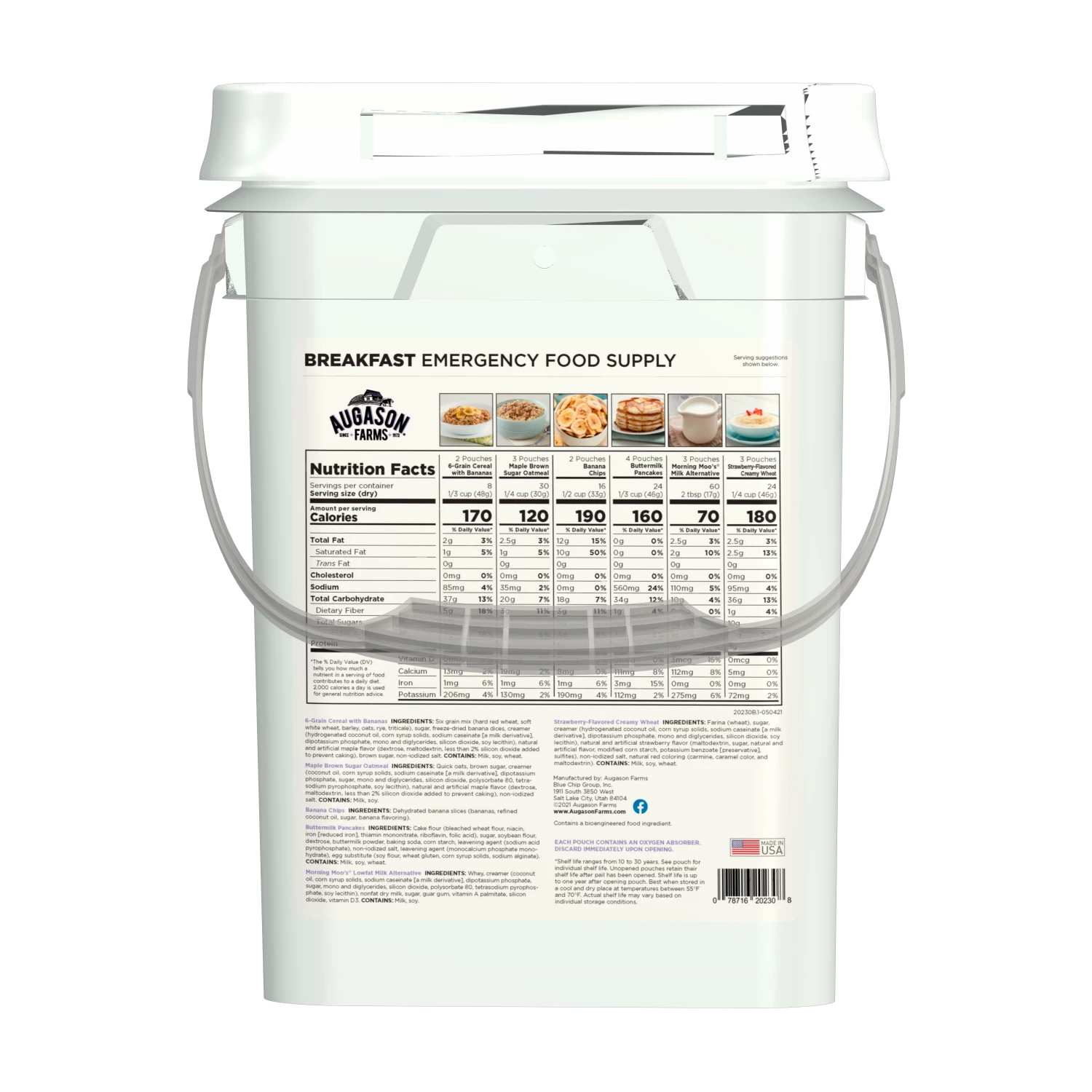 This 4 gallon emergency food kit includes some of the most popular breakfast entrees and a delicious dry powdered milk drink, Morning Moo’s Low Fat Milk Alternative. Whether you are hiking, need a quick breakfast, or are caught in an emergency, this Emergency Food Supply Breakfast Pail is packed with nutrient rich emergency foods perfect for any life event.Â