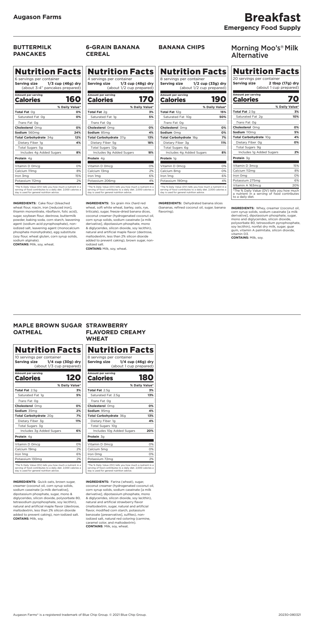 | Buttermilk Pancakes | 4 | 6 per pouch |