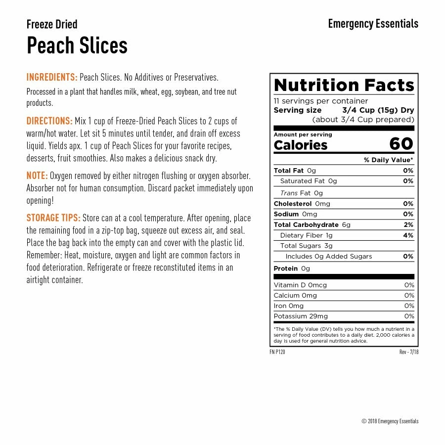They’re delicious as a snack straight from the can, or can be rehydrated to add to pies, smoothies, salads, or other recipes at your convenience. Packaged and prepared to store for 30 years in ideal conditions, these peaches are a valuable asset to your emergency food storage in helping you maintain a healthy diet during any emergency.