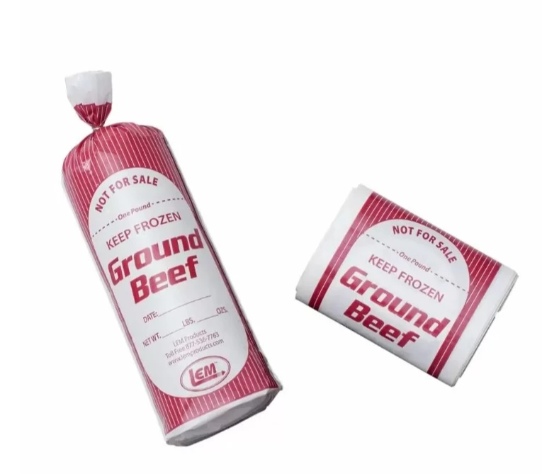 Store your ground beef easily and conveniently with these Ground Beef Poly Bags from LEM. These polyethylene meat storage bags have a 1.5 inch bottom gusset for extra burst protection, keeping your freezer clean. The bags have a 2-millimeter thickness, which helps prevent freezer burn to keep your ground beef fresher, longer. “NOT FOR SALE” is written on the bags and the words “GROUND BEEF” are printed in large, clear letters to help you easily organize and identify your meats in the freezer. These bags are easily sealed with either a polybag taping machine and poly bag tape, or hog rings and hog ring pliers. Make sure your meats are stored safely, free from freezer burn and the chance of bursting out of their bag, and go with LEM!