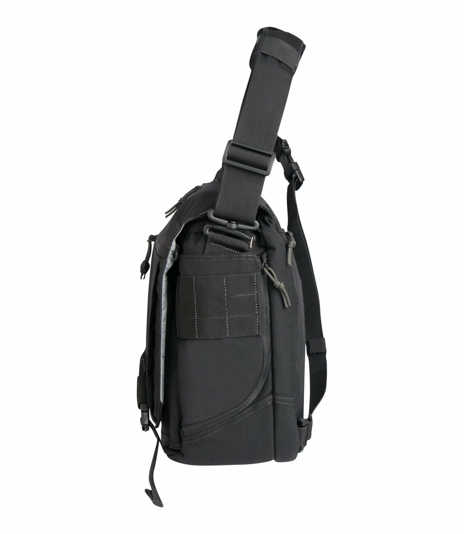 This messenger style office-to-field bag is designed to provide all of the room and durability you require to carry out your duty. The nylon fabric and premium YKK hardware give you a sturdy exterior you can rely on. Foam padded main and computer compartments keep items separate and protected, while three inner drop pockets and zip out water bottle/gear pockets provide extra storage space with organization. These features, along with the hidden CCW pocket, set this case apart from other tactical bags.