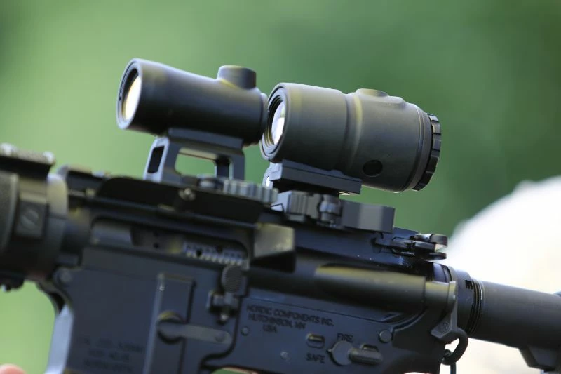 Using a magnifier with a red dot sight such as one of our x sites allows you to see a target much better. It adds magnification so you can view objects closer and clearer. The MG1 has the capability to fit on both weaver and picatinny style rails. Consequently, you can use the MG1 with any red dot sight. One of the best features of the MG1 is its flip-aside design. You can attach it to your gun, but if you don’t want to use it, you can just flip it to the side instead of completely taking it off. If you do wish to take it off, however, this product has a quick-release feature that makes it easy to attach or detach from your gun.