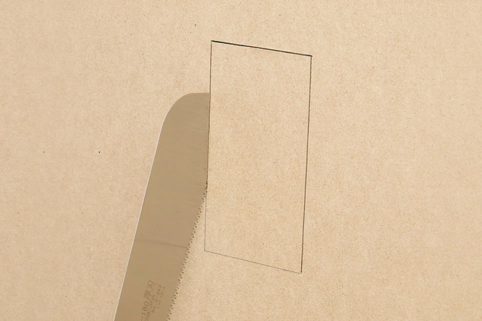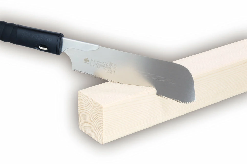 EVA grip is made out of elastomer resin. It’s a 0.5mm thick wood working saw. The blade is thick and tough and easy to use. Can cut laminated wood, General timber, Composite wood panel, MDF panel, Particle board (OSB), Ply wood, and Bamboo material.
