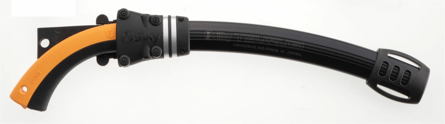 The Tsurugi Curve is similar to the uniquely designed straight Tsurugi, but is a much more aggressive impulse-hardened blade in popular sizes which will still fit into tight crotches without damage to opposing limbs. The Tsurugi is possibly the lightest weight, best balanced “big saw” ever produced, having no handle screws, nuts or extraneous hardware to keep it together. The comfortable, 2-part rubber grip is held together by an ingenious integration with the full tang blade. The Tsurugi Curve comes in a unique aluminum scabbard that can be attached to the belt or leg, depending on the users preference, and has eight rollers protecting the entryway.