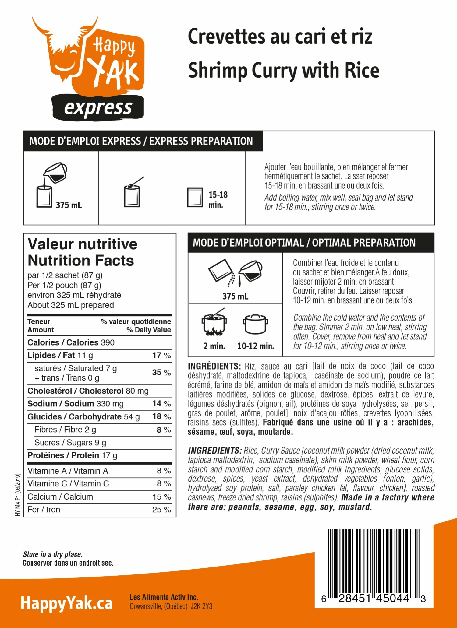 A hearty portion of northern shrimp blended with unique Indian spices and coconut milk awaits you! Rice, cashews and raisins add the perfect touch to this recipe. This meal is a customer favourite. A mouth-watering dish for those looking to add an exotic touch.