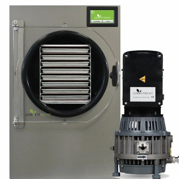 Oil free vacuum pump can be used with any size freeze dryer. They are quiet, fast, and easy to use. The Harvest Right Scroll Vacuum Pumps do not require oil changes.