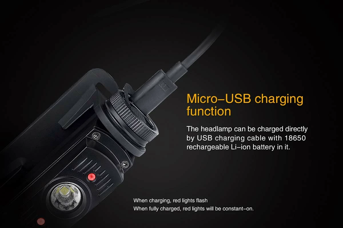 Featuring a micro-USB port for go-anywhere charging, the Fenix HL60R Headlamp delivers a maximum output of 950 lumens, beam distance of up to 381ft, and a runtime of up to 100 hours from just one rechargeable 18650 Li-ion battery. The Fenix HL60R is one of the best rechargeable headlamps on the market. This feature rich headlamp is equipped with neutral white LED for better colour rendering, a side switch to activate the five brightness levels, and the red reading light.