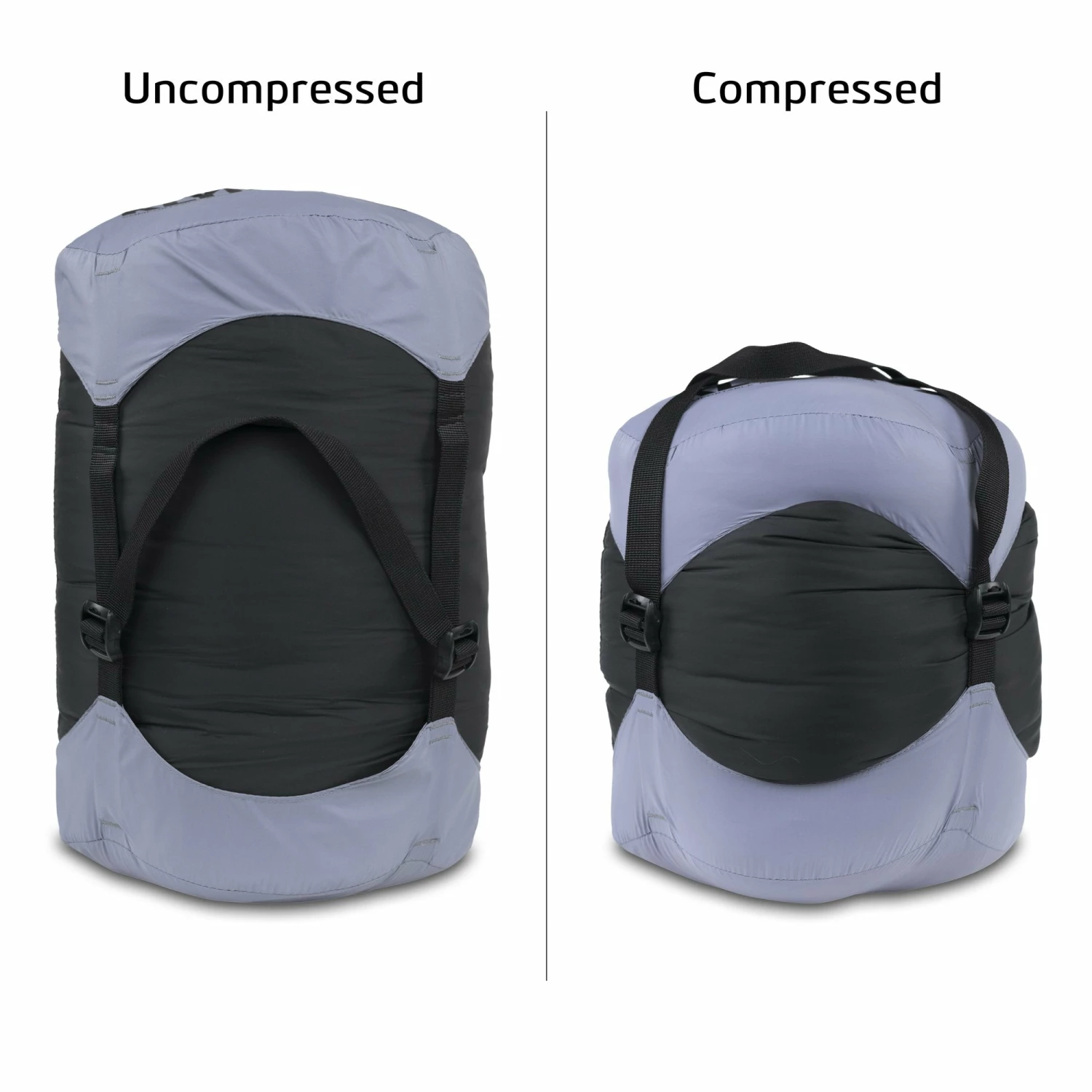 - Two handles (instead of loose straps) help compress your sleeping bag effortlessly