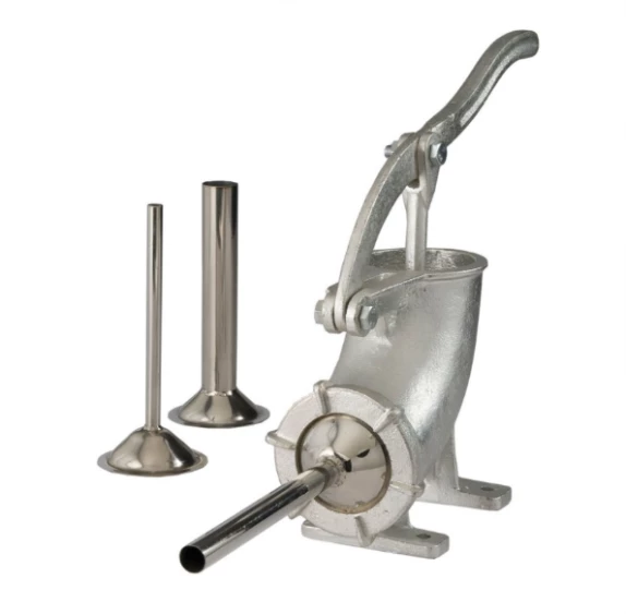 This 3 lb. Tinned Sausage Stuffer comes with three stainless steel stuffing tubes: 1/2 in, 3/4 in and 1.25 in OD. This smaller unit makes a great unit for the person who makes a small quantity of sausage on occasion. The plunger has a rubber gasket to help prevent leakage around the sides of the plunger and a new wide mouth design makes clean up fast and easy.