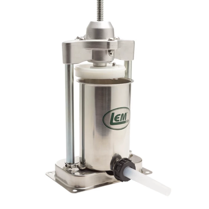The Mighty Bite 5 lb. Stainless Steel Vertical Sausage Stuffer sets the bar for performance and dependability. The precision machined carbon steel gears are manufactured to eliminate slippage and wear, and won’t rust or collect germs. The cylinder is easily removed for clean-up. The hard plastic piston with a built-in release valve allows air to escape, making your job even easier. These are reliable, high performance, gear-driven stuffers that will last. For additional protection, the 5 lb. Sausage Stuffer now includes a protective gear box cover. This innovation takes safety and durability to the next level by ensuring your gears and your food are well protected.