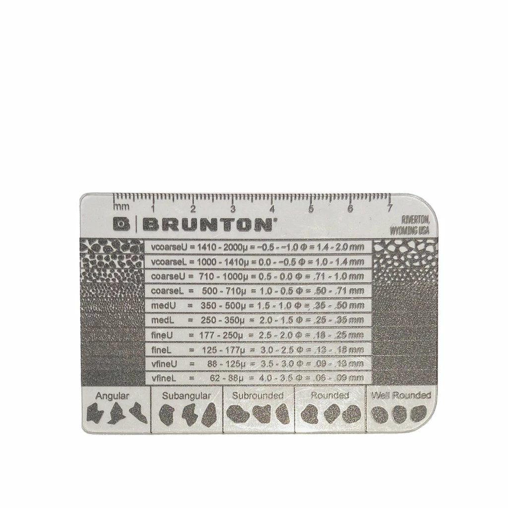 Brunton knows geology and we are proud to offer and add our rendition of the classic grain size card to our growing list of geology accessories. This lightweight and durable Grain Size Card is perfect for geology professionals and students working in the field who pay particular attention to sediment characteristics.