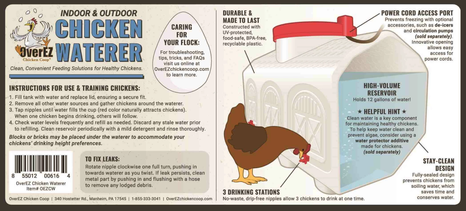 The OverEZ Chicken Waterer is a fantastic product. It’s well-made and does exactly what it’s supposed to. Highly recommend!