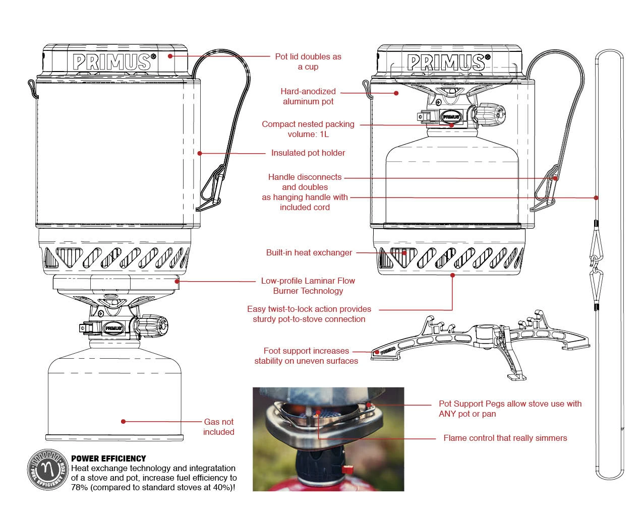 - Includes pot support pegs to use with any non-system pot or pan