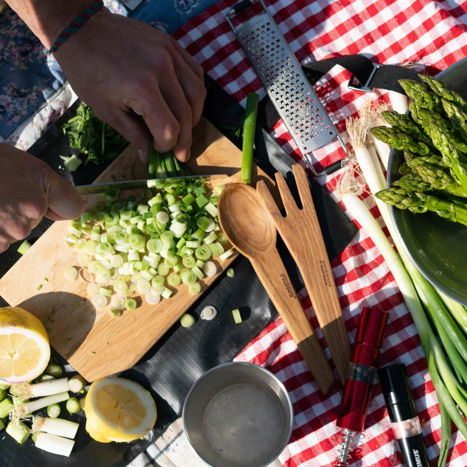 Give your outdoor cooking some extra flavour. A set of a salt and pepper mill made of durable aluminum. Easy to operate with just one hand.