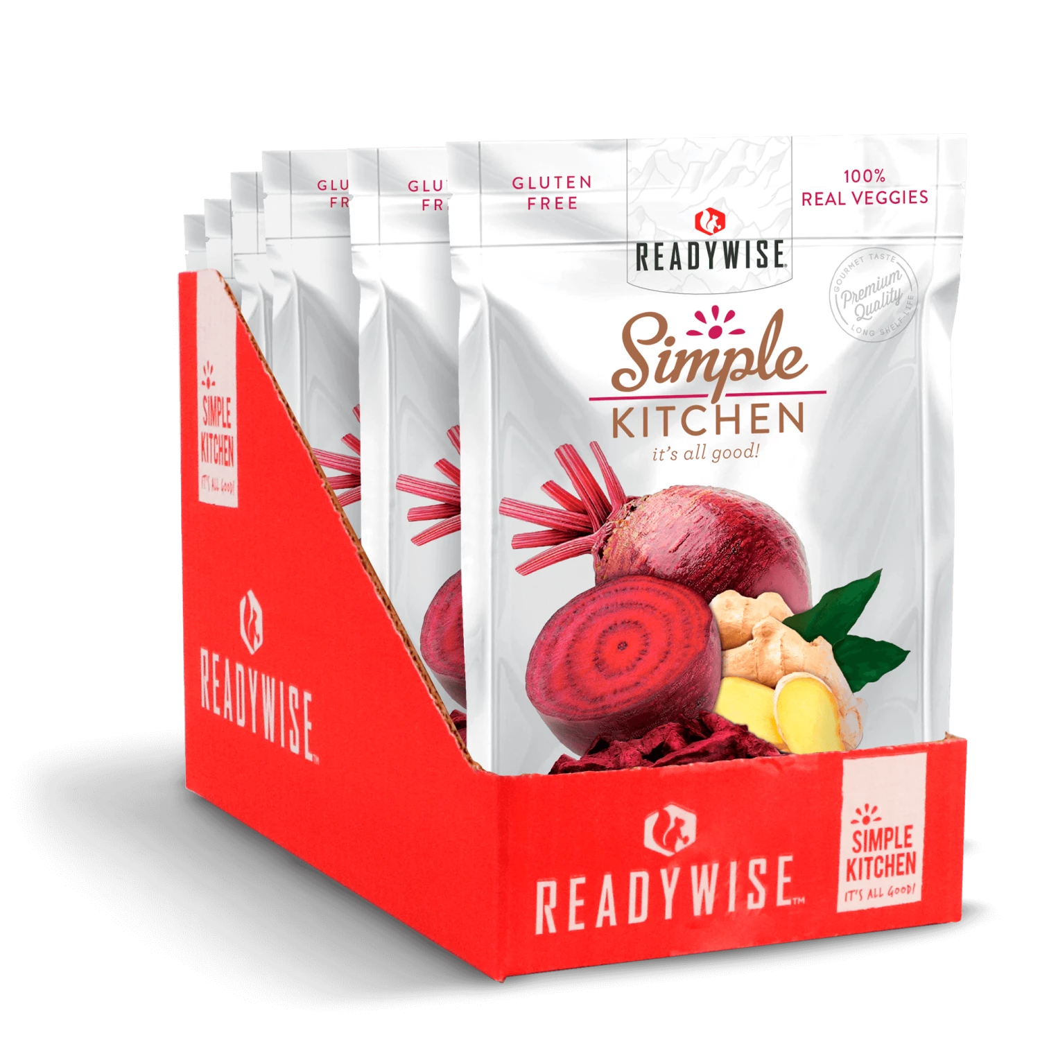 This box includes six pouches of Simple Kitchen’s (a ReadyWise Company brand) Ginger Beets.