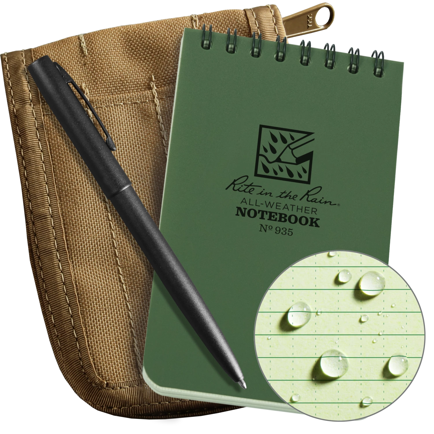 Rite in the Rain Weatherproof 3 in x 5 in Top Spiral Notebook Kit: CORDURA Fabric Cover, 3 in x 5 in Notebook, and Weatherproof Pen