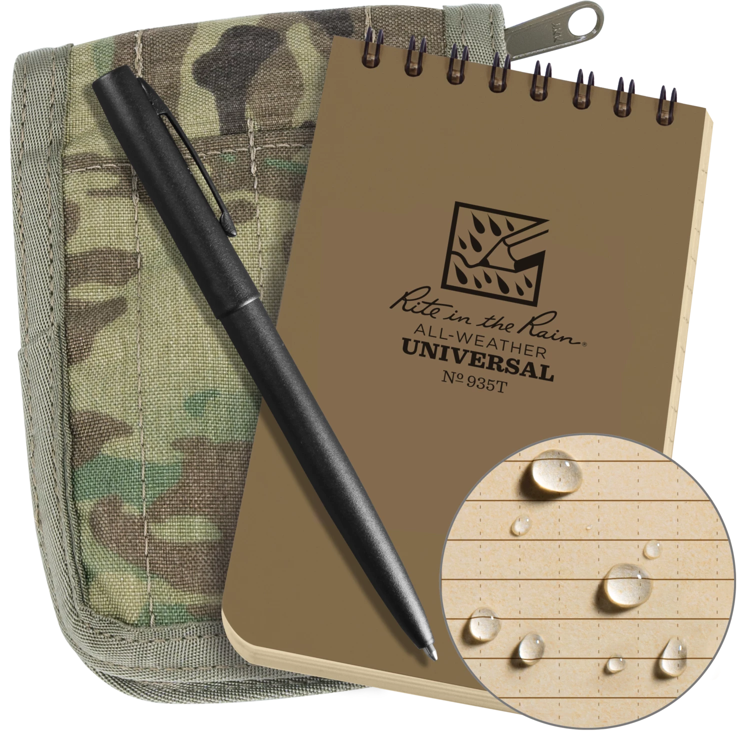 Something to write with, something to write on, and somewhere to keep it all organized – Rite in the Rain All-Weather Kits keep you writing through any conditions. Rite in the Rain has manufactured All-Weather Writing Products since 1916 – everything we make is designed for uncompromising reliability. Impact-resistant Wire-O binding keeps your pages turning with ease. Archival-grade and weather-resistant paper defies both Mother Nature and Father Time. CORDURA Fabric resists moisture and tearing, and reliable YKK zippers zip consistently and easily. Our pens write upside-down and through moisture. After all, if it’s worth writing down, it’s worth protecting with Rite in the Rain.