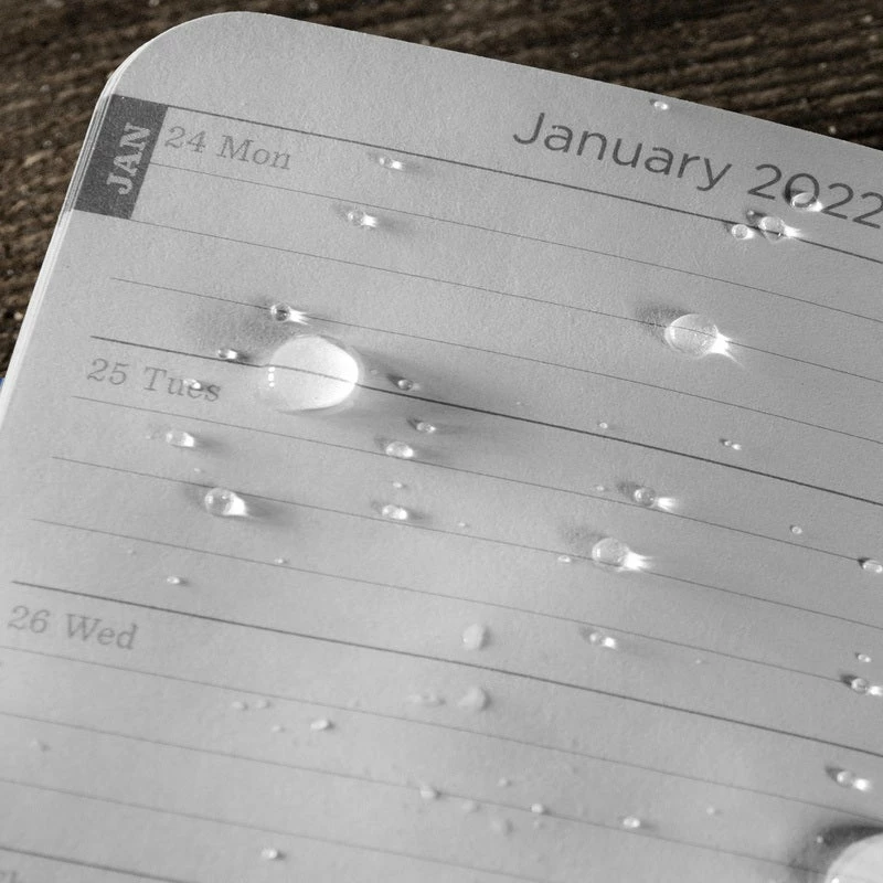 The Rite in the Rain All-Weather 2022 Pocket Calendar is the pocket planner that will actually survive the year – even through weather, laundry cycles, sweat, and stains. Our patented weatherproof paper protects your notes and appointments from Mother Nature. Each spread features a weekly planning page at left and a dot grid note page at right. An Important Dates page at the back of the book helps you remember birthdays and holidays. It’s simple, it’s durable, it’s perfect for pocket carry. It’s the indispensable Pocket Calendar by Rite in the Rain.