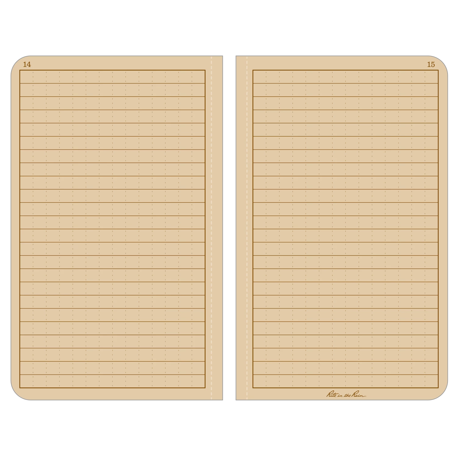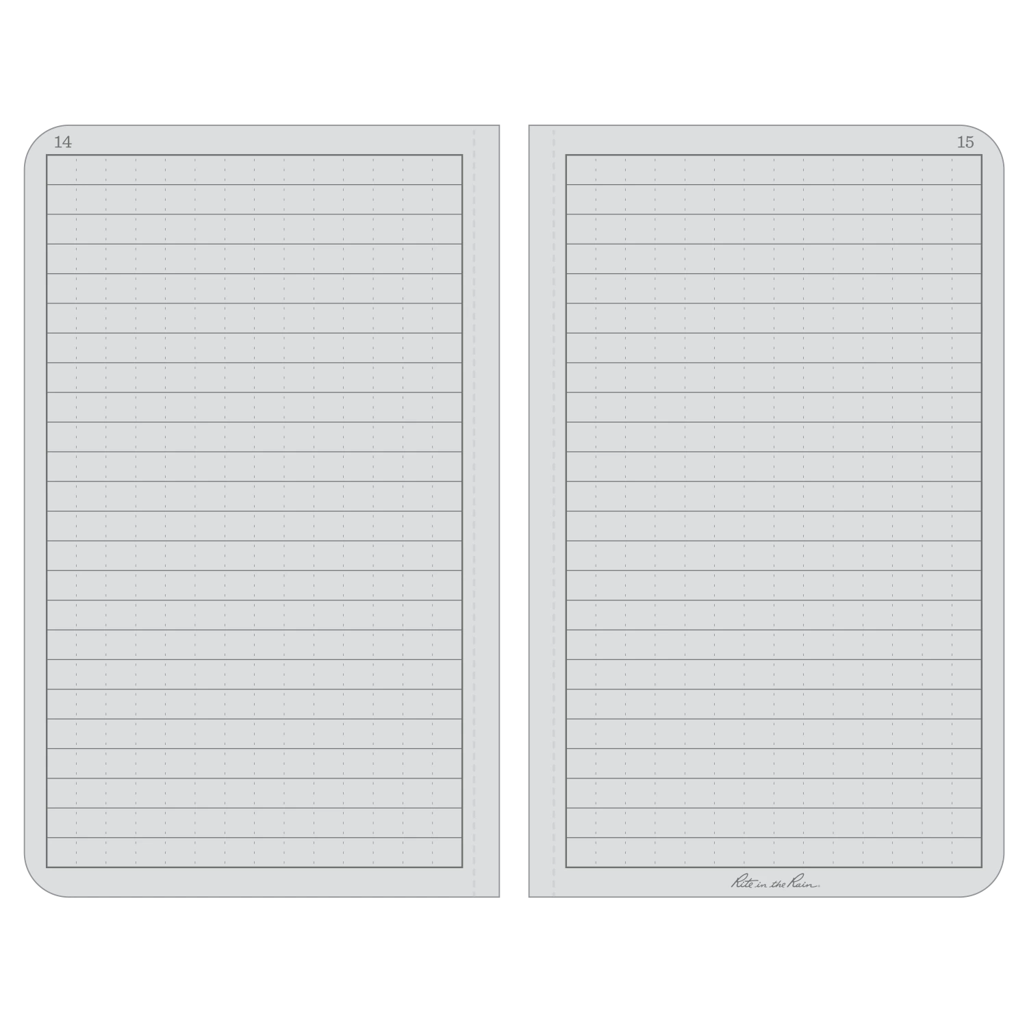 Used for field work around the world, our hard-cover books are made to endure the onslaught of the elements as well as the slow, insidious passage of time. The durable coated fabric cover protects your field notes from impact and weather. Rite in the Rain weather-resistant, archival-grade paper holds up through exposure to moisture and a lifetime in storage. The non-glare paper is legible in bright sunlight. No matter what you put your notes through and no matter when you go back to read them, what is written on Rite in the Rain will remain legible.
