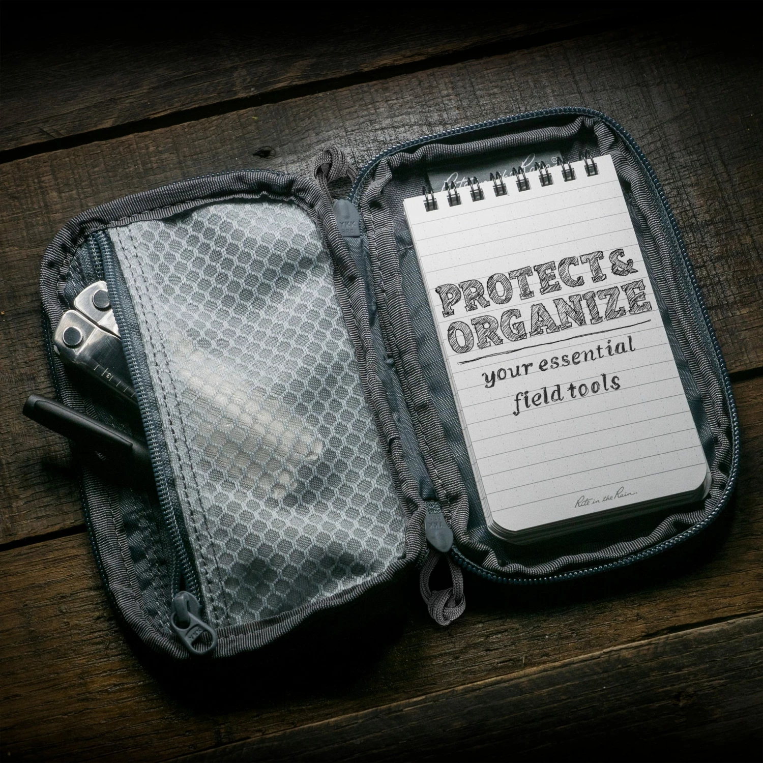 The Rite in the Rain All-Weather Pocket Organizer stores and protects all of your small field essentials. It’s made with durable materials like YKK Zippers, 500D Cordura, RipStop nylon liners, and ToughMesh Pockets. A versatile belt loop permits horizontal or vertical wear, as well as attachment to MOLLE packs. Custom-fit for our Rite in the Rain 3×5 All-Weather Spiral Notebook, this Pocket Organizer holds a whole lot more than just your notes.